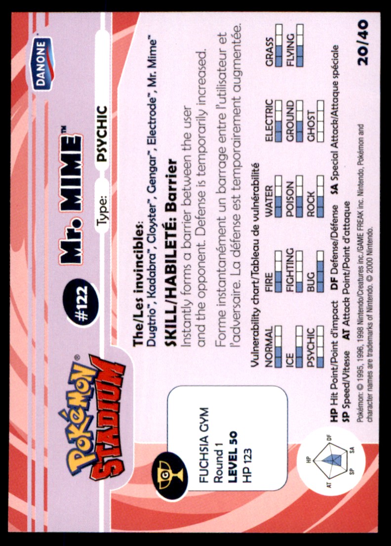 2000 Danone Pokemon Series Mr. Mime #20 VLP