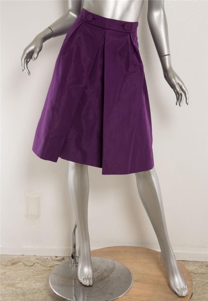 - Jupe plissée genou PRADA femme en soie violette A-Line longueur 2 boutons 8-44 NEUVE 1225 $