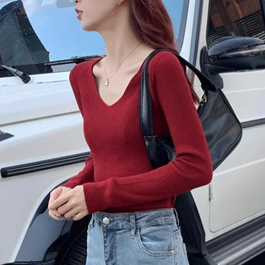 - Comfortable Womens Casual Long Sleeve T Shirt Featuring a V Neck Design